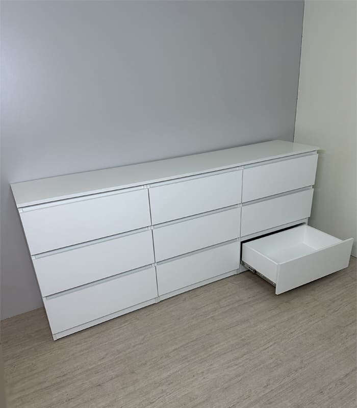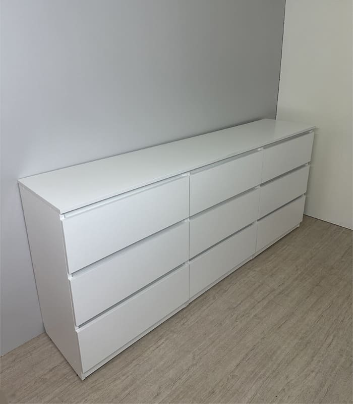 Комод в спальню большой тройной — это стильное и функциональное решение для хранения вещей. Он изготовлен из высококачественных материалов и доступен в различных вариантах декора, таких как белый, венге, дуб молочный, дуб сонома и ольха. Комод имеет девять ящиков. Они обеспечивают хранение одежды, постельного белья и других предметов. Благодаря своей конструкции, он идеально вписывается в интерьер спальни и добавляет в неё уют и комфорт. Большой тройной комод — это выигрышный вариант. Он удобный и очень вместительный по доступной цене.